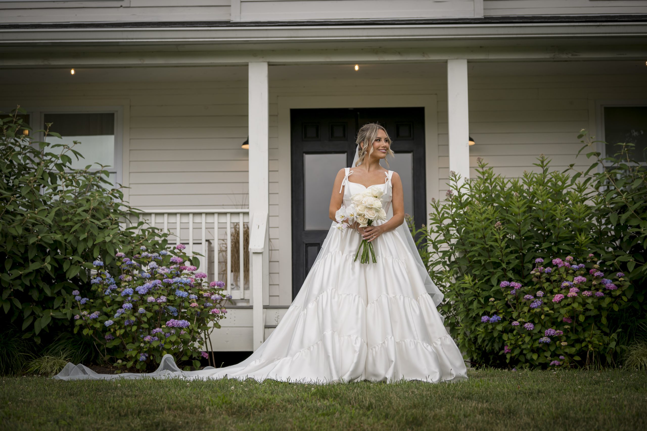 Casey is all about bringing your florals to life. With dimensional lace, soft shimmer, and a full ball gown silhouette, it feels romantic, elevated, and just a little bit regal. The delicate straps and airy layers keep it light and wearable, making it the perfect match for a bouquet that’s full, textured, and anything but ordinary.
