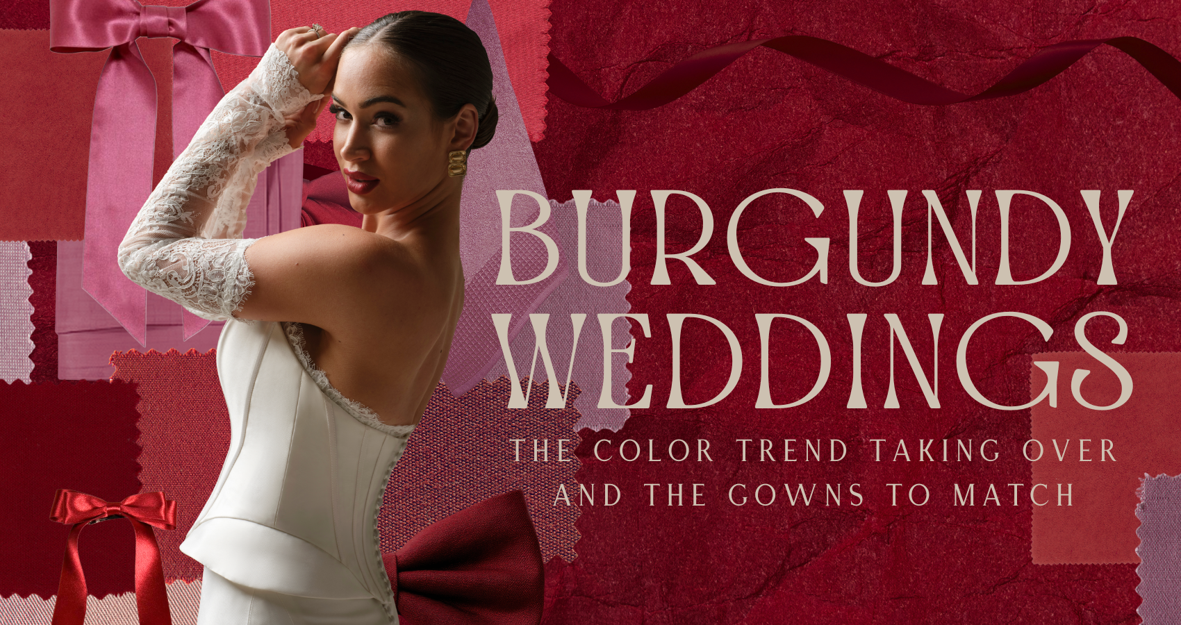 Ambrose by Maggie Sottero features a bright, daring shade of crimson pink. We love how this style pairs with jewel tones, greenery, and vintage wedding venues… It’s truly a sight to behold!