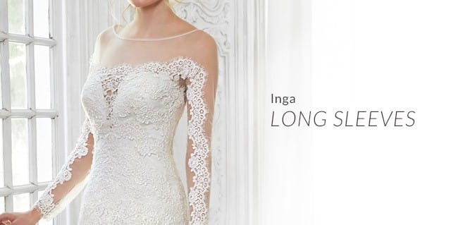 Today’s Friday Favorite, a long sleeve tattoo lace wedding dress, is the epitome of modern romance. Inga, from our Maggie...