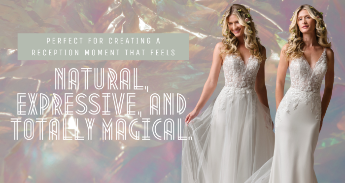 The easiest way to find your reception dress is to try styles on in person. Visit an Authorized Maggie Sottero Boutique to explore silhouettes, feel fabrics, and get personalized try on tips from expert stylists. If you are on a shorter timeline, ask about Maggie reception ready gowns that offer quicker delivery.