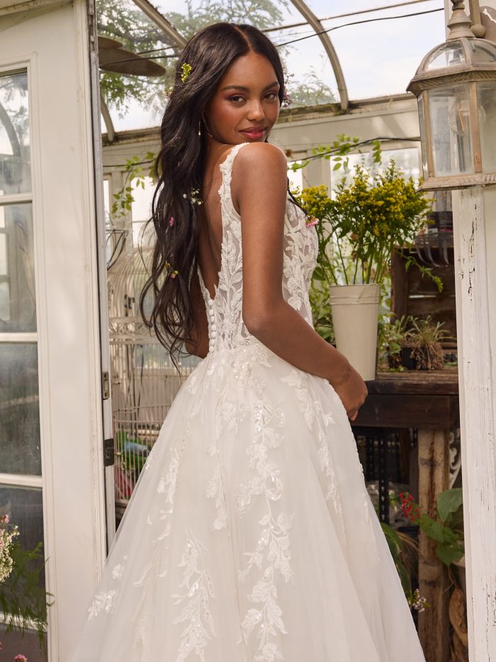 Soft tulle and gentle movement make Memphis the gown for the free-spirited western bride. This dress flows and sparkles with every step, whether you’re walking down a barn aisle or dancing under string lights.
