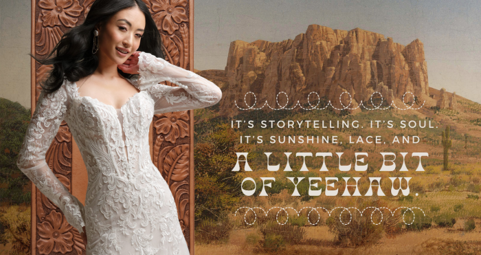Find your dream dress at an Authorized Boutique and start your journey with the perfect western-inspired gown.