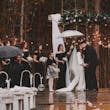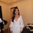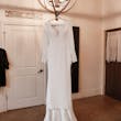 DISCONTINUED - A “bishop sleeve gown” is a misnomer—this trend is anything but solemn. It's playful, iconoclastic—a long-sleeved crepe wedding dress for the chapel of nature.