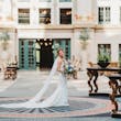 A wedding look can be many things, and sometimes you just need it to be really, really pretty in a chic and simple way — under which we file this glitter fit-and-flare bridal gown with soft shimmer and a lovely strapless bodice.