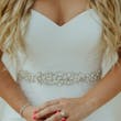 DISCONTINUED - A high-impact vintage mermaid wedding dress in luxe satin and embellishments.