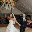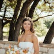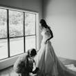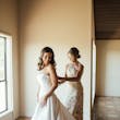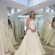 Regal drama with a twist: This yarn-dyed strapless wedding dress with an unexpectedly chic basque waistline and irresistible satin fabric.