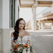 Sparkly lace fit-and-flare bridal dress with off-the-shoulder sleeves