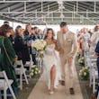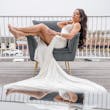 Channeling goddess vibes on your big day? Here's a material that looks like marble but moves like magic. A Grecian-inspired crepe wedding dress with chic lines and guaranteed danceability.