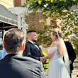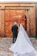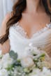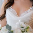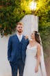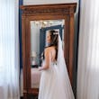 DISCONTINUED - To channel your inner starlet, Greek goddess, modern muse — pair a dreamy chiffon A-line wedding dress with lace details, flattering draping, and a stunning back treatment.