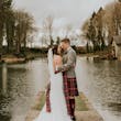 DISCONTINUED - Floral fit-and-flare bridal gown with detachable lace arm bands