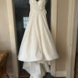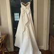 Romantic pleated satin wedding gown with a bow and strapless sweetheart neckline