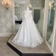 DISCONTINUED - Dear enthusiasts of the princess-inspired lace A-line wedding dress: do you want to stop searching for the perfect combination of textured tulle, romantic motifs, and chic neckline? Or is it the thrill of the chase that keeps you going?