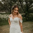 DISCONTINUED - Off-the-shoulder lace wedding gown to show off your figure