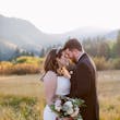 DISCONTINUED - You're giving chic. You're glowing with sophistication. You're serving up major bridal romance in this crepe wedding gown designed for the dreamiest of boho celebrations.