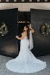 A unique boho fit-and-flare bridal gown has charm aplenty. But what about volume? What about texture? What about a nod to 70's glam in a curve-hugging silhouette and plunging neckline? We're here for all the gorgeous potential of this star-worthy design.