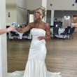 DISCONTINUED - You're a goddess, and therefore deserve an ethereal fabric, graceful tailoring, and a heavenly silhouette. We present this simple mermaid bridal dress for your (ultra-classy) consideration.
