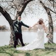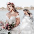 DISCONTINUED - An off-the-shoulder lace wedding dress is exceptionally elegant. A double-lace train is exceptionally extravagant. Let's all pause and appreciate living in this world of beautiful contradictions.