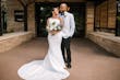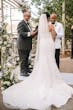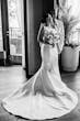 I felt absolutely gorgeous in my wedding dress. Nesrine is sleek and sophisticated, and it complemented my shape beautifully, which was especially important to me since I’m only 5’3”. I added a touch of lace over the sheer back panel (I know, the sheer back is one of the most striking features of Nesrine!) to make it a bit more modest and help me feel comfortable showing my back. Overall, I felt like a Hollywood star in this gown—glamorous, confident, and the most radiant version of myself.