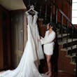 Are you a true trendsetter? Unexpected details elevate this sexy floral side slit bridal dress to the status of couture.